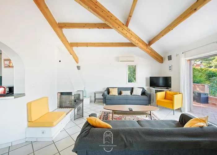 Villa "Farniente" 4 Etoiles - Piscine Chauffee By Hc Hyères med 4 sovrum, som ligger ungefär 25 minuters promenad från La Route du Sel, erbjuder gästerna en terrass där de kan koppla av. Villan med 4 badrum erbjuder solarium för gästernas avkoppling.